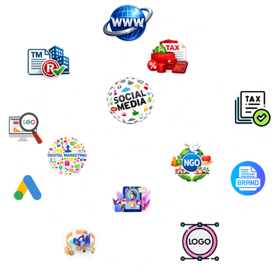 From company registration to taxation, NGO compliance, and digital marketing, we provide complete business solutions under one roof — saving your time, cost, and effort.